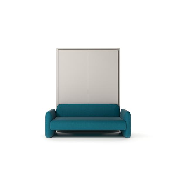 The sofa, in the sizes 201 cm - 281 cm (also in the free version), is integrated to the transforming system with a murphy bed and shelves. Patented CF09 slatted bed base cm W 166 cm x D 208.4 cm – Mattress W 150 cm x D 198 cm.
