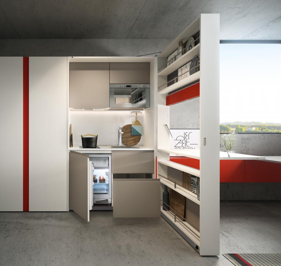 Parete con cucina a scomparsa